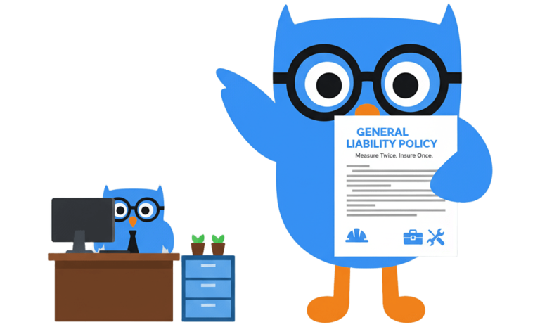 Have questions about getting started, making changes, or renewing your policy? Hoot at me. I’m Mr. Hoots, here to translate insurance into job-site English and get you what you need fast.
